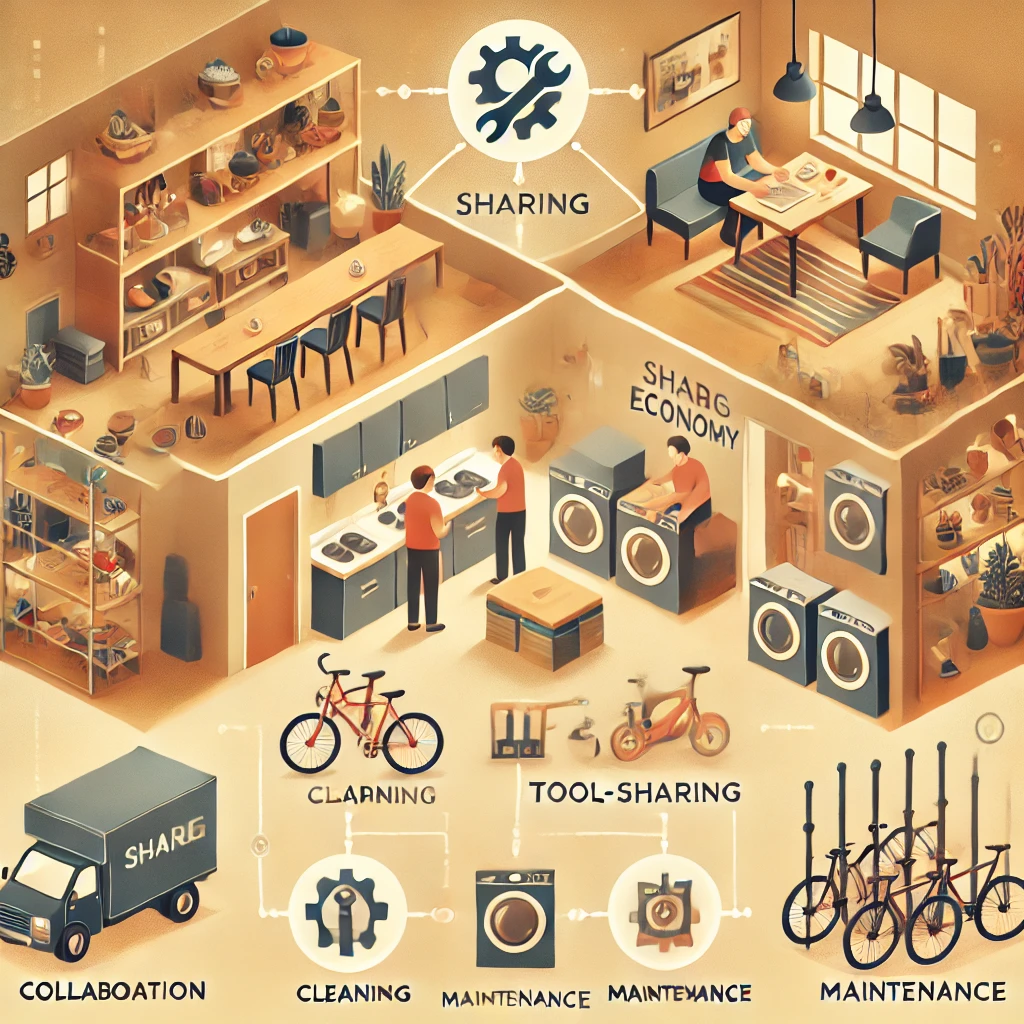 **공유 경제(Sharing Economy)**는 자원을 공동으로 사용함으로써 효율성을 극대화하고 비용을 절감하는 경제적 모델입니다. 이러한 개념은 주거 공간에서도 효과적으로 적용될 수 있으며, 특히 쉐어하우스와의 결합은 단순히 공간을 공유하는 것을 넘어 생활의 모든 측면에서 자원을 함께 나누는 공동체적 문화를 형성할 수 있습니다. 쉐어하우스 내에서는 거주자들이 주방, 세탁실, 공용 거실과 같은 시설을 공유할 뿐만 아니라, 가전제품, 도구, 심지어 교통 수단까지도 공유할 수 있는 모델이 가능합니다.