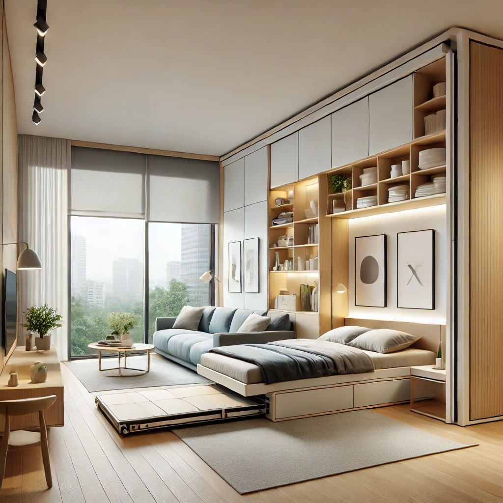 현대 사회의 변화에 맞춰, 변형형 가구와 스마트 가구가 주거 공간에 빠르게 확산되고 있습니다. 대표적인 사례로는 **이탈리아 브랜드 ‘Clei’**의 변형 가구를 들 수 있습니다. 이 회사는 벽에 수납할 수 있는 접이식 침대(Murphy Bed), 책상과 침대가 결합된 멀티형 가구 등으로 유명하며, 특히 소형 아파트나 원룸에서 매우 유용합니다.